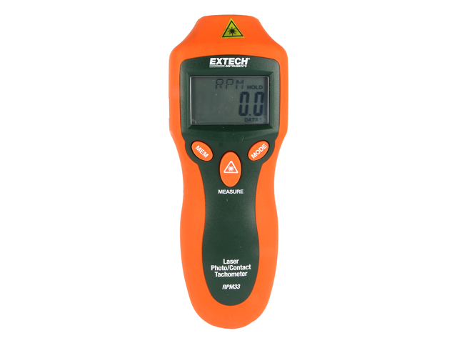 Un tacómetro es un dispositivo que le permite medir de manera fácil y precisa la velocidad de rotación RPM (Rotary Per Minute). La medición es sin contacto y también se basa en tecnología láser. El funcionamiento es similar al que ya se ha descrito en el caso de los dispositivos mencionados anteriormente: el haz de luz incide en el elemento giratorio y regresa parcialmente cuando se refleja en el elemento reflectante. El dispositivo cuenta el número de reflejos y en base a ellos determina la velocidad de rotación.