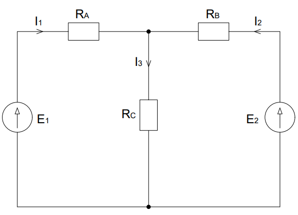 Según el diagrama anterior, el circuito tiene dos fuentes de voltaje y tres elementos resistivos. Uno de ellos está ubicado en un ramal del circuito principal. El objetivo de la tarea será dibujar vectores de flujo actuales y calcular sus valores. Debido a los valores de resistencia y voltaje seleccionados aleatoriamente, los cálculos se realizarán con cierta aproximación.