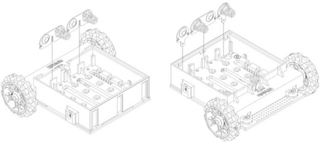 Coloca los motores en el canal de la parte delantera del chasis.