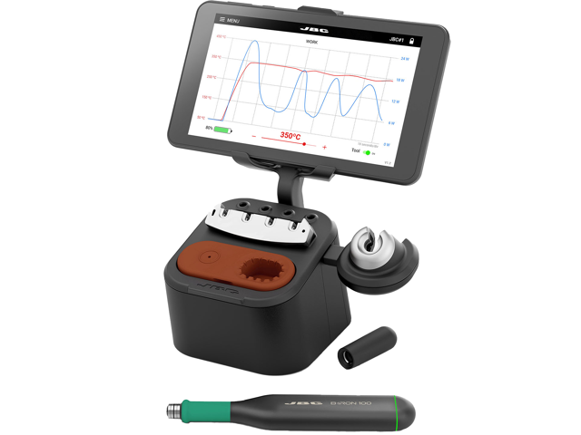 Los productos B·IRON de JBC son soluciones innovadoras que incorporan tecnologías de última generación: baterías de iones de litio eficientes, comunicación inalámbrica Bluetooth y sistemas microprocesadores en miniatura. Estos soldadores compactos, inalámbricos y alimentados por batería están equipados con un circuito de control integrado, cuyas configuraciones se pueden ajustar mediante la consola del operador o un dispositivo móvil (teléfono/tableta) a través de la aplicación de JBC (disponible para Android e iOS).