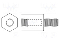 Casquillo distanciador roscado; 40mm; Rosca inter: M4; hexagonal