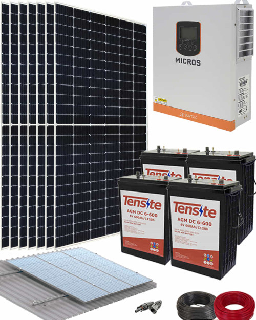 El Kit Instalación Placas Solares Aislada 3500W 24V 17500Whdia es la solución perfecta para aquellos que buscan producir su propia energía. Incluye un inversor de 3500W y 24 voltios para alimentar consumos medios en una vivienda ocasional. Sus paneles solares de alta eficiencia producen energía suficiente para alimentar una vivienda que tenga una potencia pico de hasta 3500W y acumular los excedentes en sus baterías sin mantenimiento. Este kit solar aislado está diseñado para una fácil instalación, ya que la conexión de sus paneles se realiza en serie, y se conectan directamente a las protecciones eléctricas ya cableadas junto al inversor cargador.